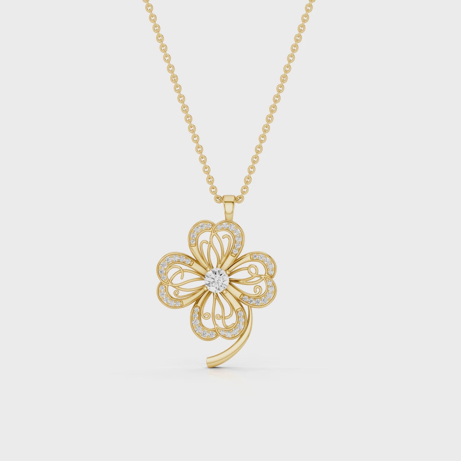 Faery, Clover Leaf Pendant in 18K Yellow Gold