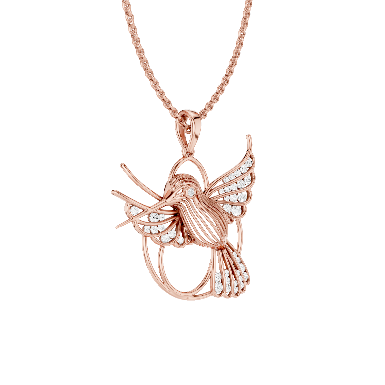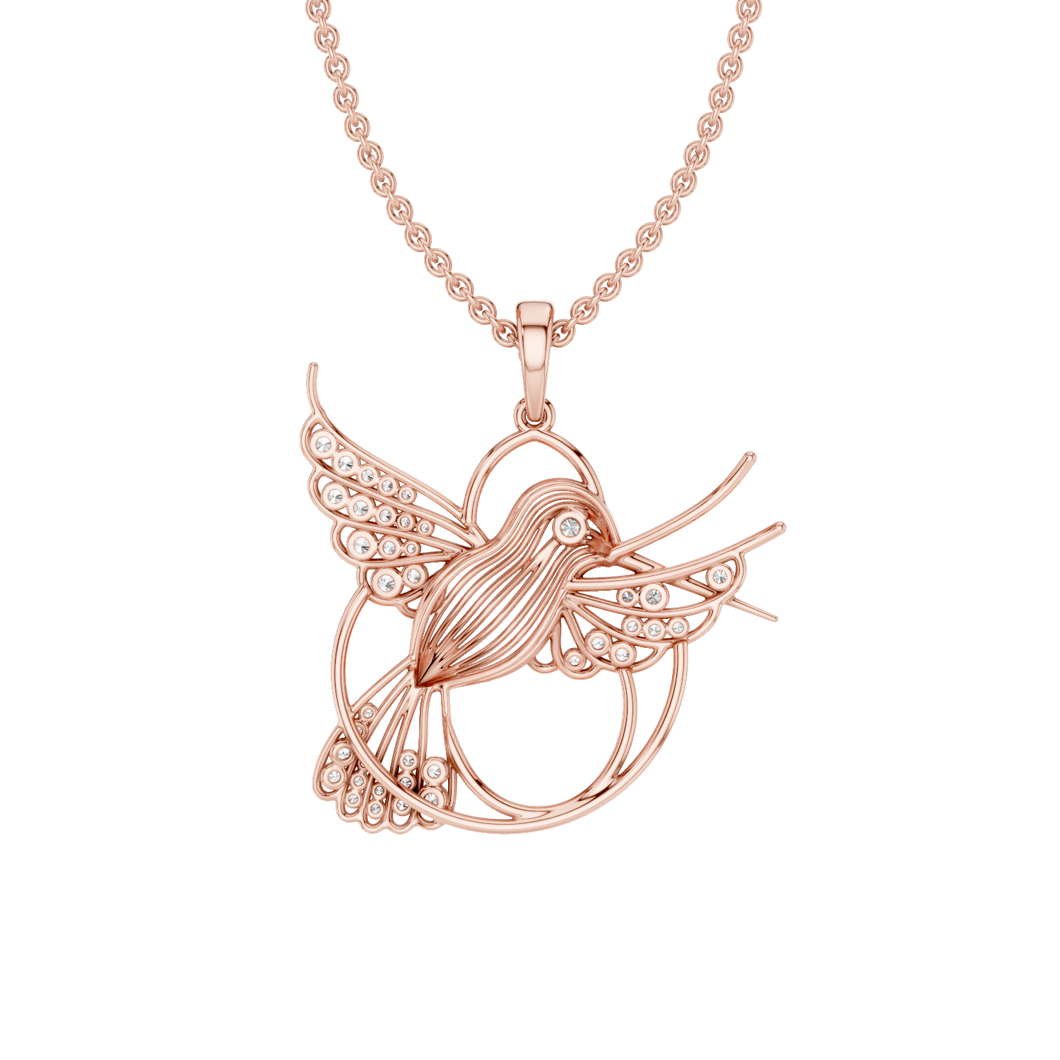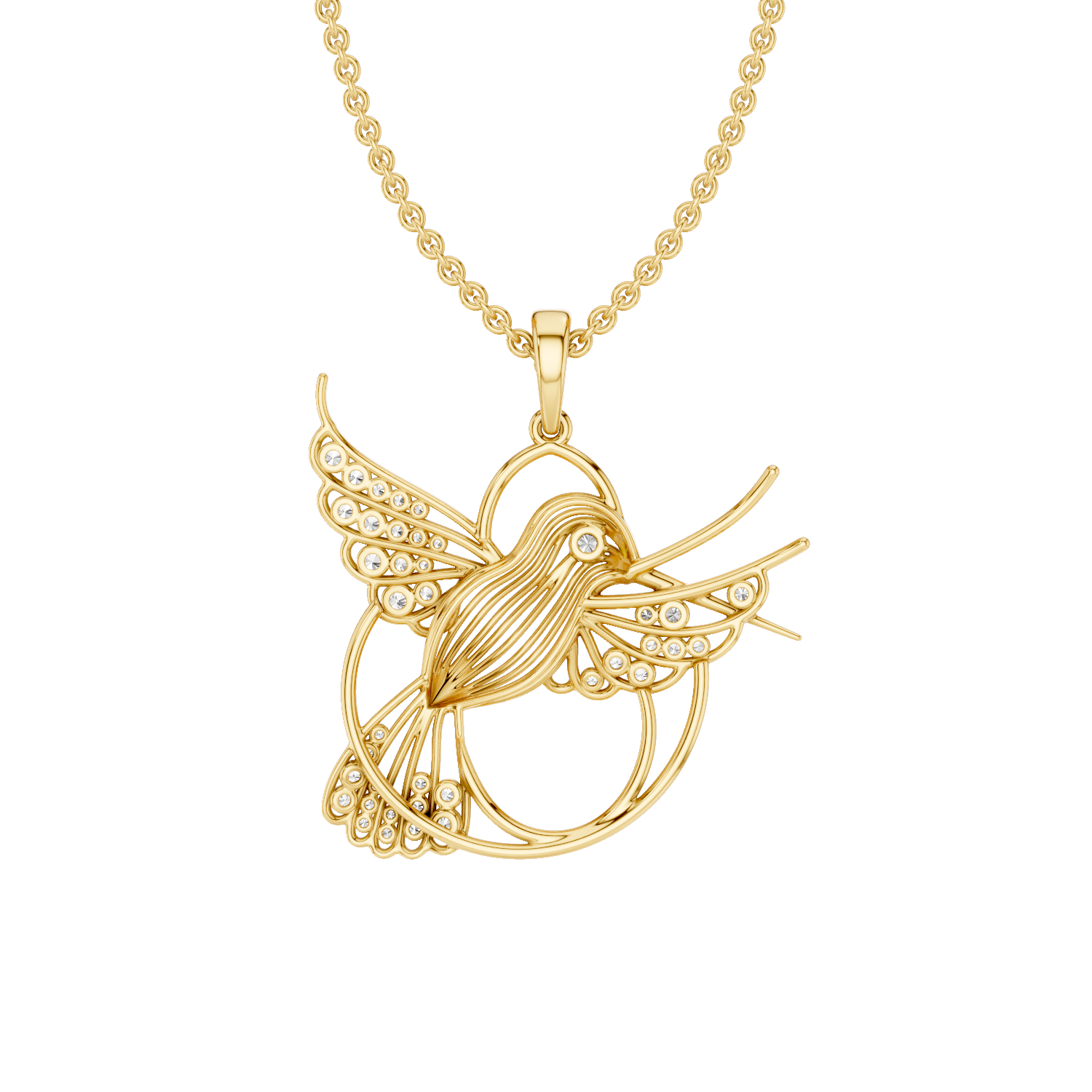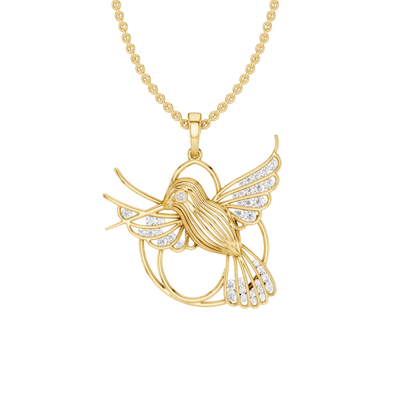 Set with shimmering lab-grown diamonds, the pendant reflects the lightness and vitality of a hummingbird in flight. Its elegant design and subtle sparkle make it a versatile daily charm — for dreamers, fighters, and believers in magic.