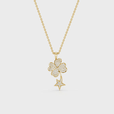 Starry Nite, Clover Leaf Pendant, Gold
