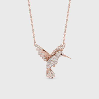 Winged Luck, Hummingbird Pendant in 14K Rose Gold